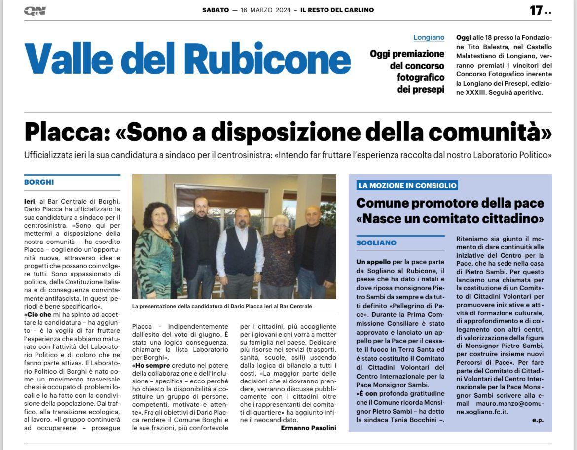 Candidato sindaco a Borghi con la lista Laboratorio per Borghi, naturale evoluzione del gruppo Laboratorio Politico Borghi. Profondamente ecologista, difensore della costituzione e convinto sostenitore dell'antifascismo. Appassionato di nuove tecnologie, automobili, cinema, musica jazz, fusion, rock.