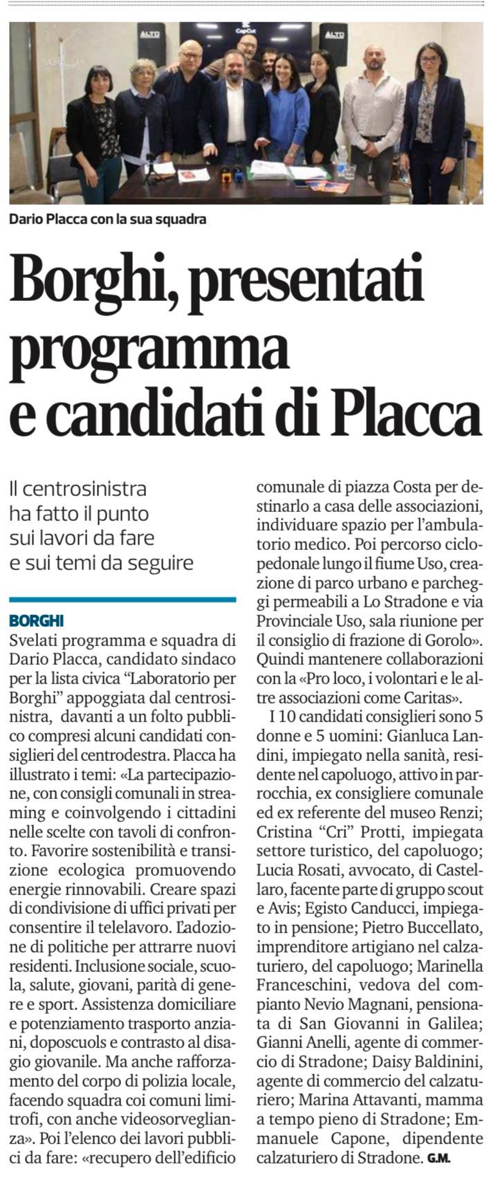 A Borghi nasce dalla sinergia di due gruppi che operano nel territorio con le sigle Movimento 5 Stelle e Partito Democratico.